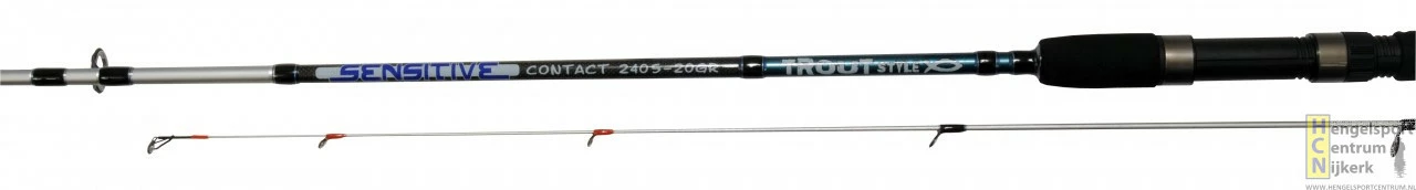 Zeer gevoelige forelhengel voorzien van een versneden glastop.
