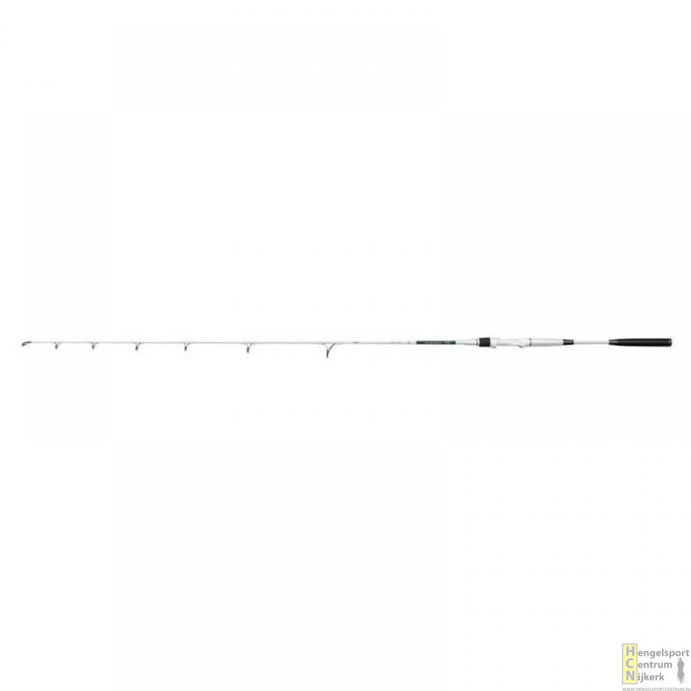 Speciaal ontworpen voor verticaal jiggen. De witte X-TAAZ verticale ext. 170 is misschien wel de meest opmerkelijke MADCAT®-hengel die de jongens achter MADCAT® tot nu toe hebben ontwikkeld. Het belangrijkste kenmerk hier is de uitschuifbare kont! Een korte draai tegen de klok in stelt de visser in staat om de kolf te verlengen. Om het weer op de gewenste lengte te fixeren, volstaat een simpele draai met de klok mee. Het voordeel is enorm: tijdens het verticaal jiggen geeft de korte butt end maximale bewegingsvrijheid. Tijdens het gevecht zorgt de verlengde kont letterlijk voor meer hefboomwerking. Gemaakt met een 30 ton Toray carbon blank, een Fuji® molenhouder en SeaGuide® geleideogen.