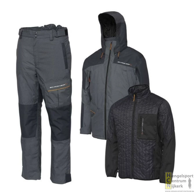 Dit warmtepak van Savage Gear bestaat een een warme, stevig gewatteerde buitenjas, een aparte binnenvoering en een stevige broek. De binnenjas kan ook perfect apart gedragen worden. Dit pak is 100% wind- en waterdicht en heeft een comfortabele pasvorm dankzij de elastische taille en manchetten. Het ademend materiaal zorgt ervoor dat je niet gaat zweten. De jas is voorzien van een capuchon en handige opbergzakken met ritssluiting. De delen aan de ellebogen en knieën zijn verstevigd om een lange levensduur te garanderen. Met dit pak blijf je warm en droog in de meest barre omstandigheden, ideaal voor vissers die er graag in de koude wintermaanden op uit trekken.- 3-delig warmtepak
